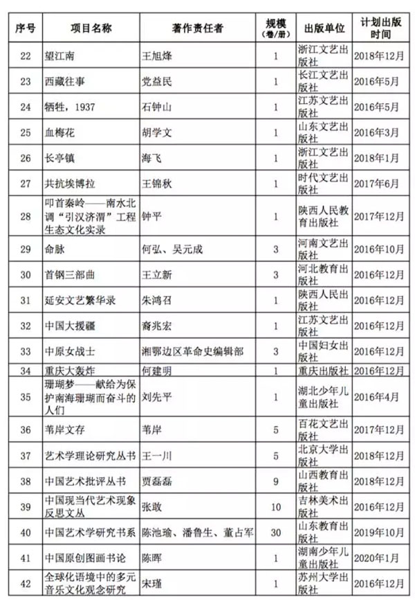 表2:文艺原创精品出版规划项目