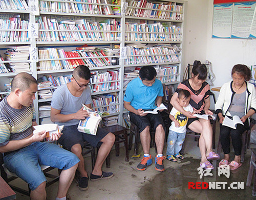 红网新邵6月17日讯(通讯员 刘志坚)6月16日上午,湖南省新邵县陈家坊镇茅坪村几位村民正在农家书屋里学习“充电”。近年来,该村将农家书屋建设作为提升村民整体素质、丰富群众文化生活的惠民工程来抓。目前,村里的农家书屋藏书达3000余册,书屋已成为村民们学着用科技增收致富的“加油站”。