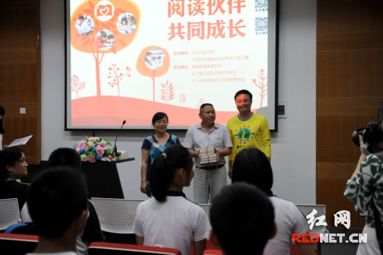 7月7日上午10:30,由长沙市图书馆和中国民主建国会长沙市天心区工委联合主办的“阅读伙伴 共同成长”公益募捐仪式在长沙图书馆三楼小报告厅举行。民建长沙市市委专职副主委李丽雄女士、长沙市图书馆副馆长肖雨滋女士、民建天心区工委主委王德军先生、桑植澧源镇中学校长刘吉国先生、长沙麓山国际学校中加校区蒋博老师出席了启动式并发表致词。
