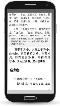 电子书《史记》加入各种注释,便于读者阅读。资料图片