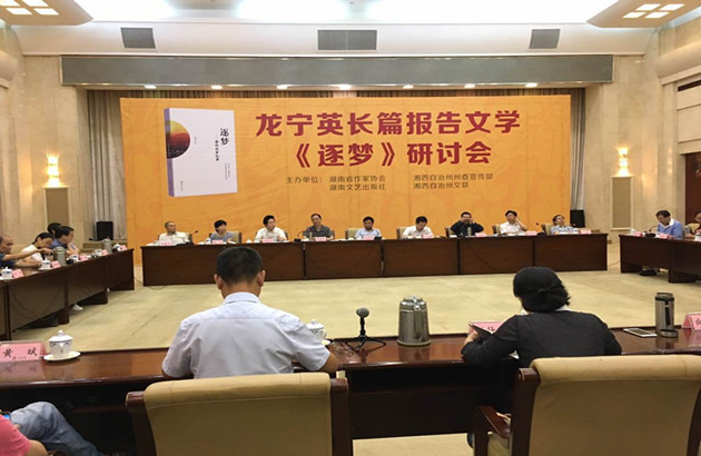 本网讯(记者 刘哲 彭湖) 9月2日,由湖南省作家协会、湘西自治州州委宣传部、湖南文艺出版社、湘西自治州文联联合主办的“龙宁英长篇报告文学《逐梦——湘西扶贫纪事》研讨会”在长沙举行。中国作协创联部主任彭学明,中国作家网主编、《文艺报》文学评论部主任刘颋,中国作协创联部综合一处处长赵宁,人民日报文艺部艺术编辑室副主编张健,湖南省作协党组书记、常务副主席龚爱林,湘西自治州委常委、副州长孙法军,湖南省评论家协会主席、岳阳市文联主席余三定,中南传媒集团总编辑、湖南省作协副主席刘清华,湖南省作协党组成员、机关党委书记、毛泽东文学院管理处主任、省报告文学学会会长游和平,湖南文艺出版社社长曾赛丰等40多位省内外知名评论家、学者、出版家、作家参加了研讨。研讨会由湖南省作协主席、党组副书记王跃文主持。