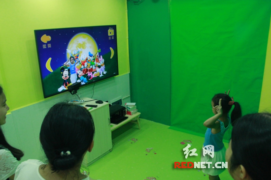 小朋友用水彩笔在纸上为小海龟涂上颜色,然后经过3D扫描图纸,这只小海龟瞬间活了,还不停地在大屏幕上游来游去;跟着虚拟场景一起运动,在不断运动中学习英语单词;站在电视机屏幕前,用手上下左右滑动,选定背景图片,按下拍照键,再对着屏幕摆出造型,照片就打印了出来;通过特制的毛笔在软件中进行书法练习和欣赏……