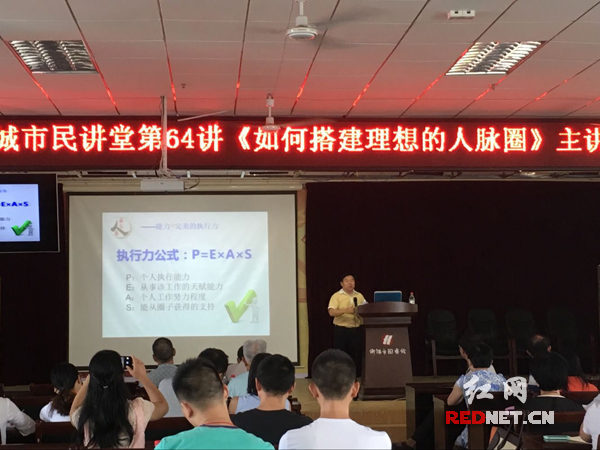 红网衡阳9月27日讯(通讯员 李双至)9月25日上午,湖南省衡阳市图书馆公共文化服务品牌项目“雁城市民讲堂”第64讲在市图书馆六楼报告厅举行,南华大学经济管理学院客座教授、三创学院执行院长、高级心理咨询师橙锋应邀主讲《如何搭建理想的人脉圈》。