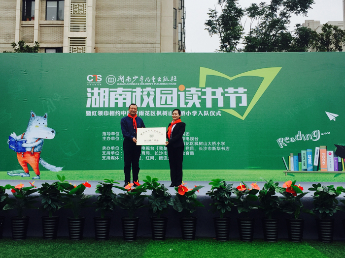 本次活动中,湖南少年儿童出版社与枫树山大桥小学共同揭牌了“湖南少年儿童出版社阅读推广基地”,湘少社负责人表示,希望通过湖南校园读书节,搭建湘少社、优秀作家和学校之间的桥梁与平台,为小朋友提供更好的阅读服务。