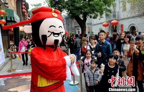 资料图:大雪节气“财神”福州街头送祝福。中新社发 刘可耕 摄