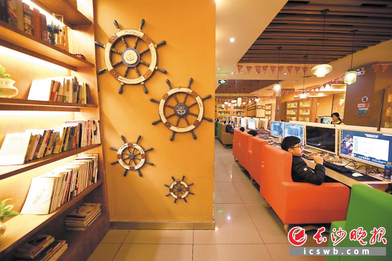 在河西麓山路的湘浦网吧连锁网娱网鸽店,将咖啡厅、书吧超市等配套集合在一起让顾客有更多选择。长沙晚报记者 黄启晴 摄