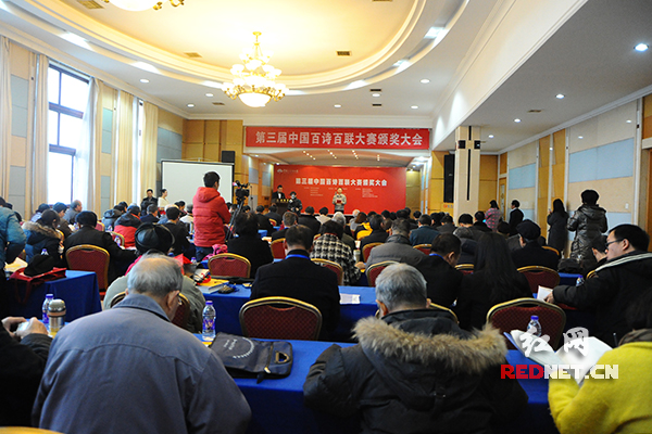 24日上午,第三届中国百诗百联大赛颁奖大会在长沙举行。