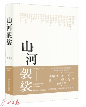 2017年伊始,李修文的首部散文集《山河袈裟》正式公开出版发行,他在自序中说:“收录在此书里的文字,大多手写于十年来奔忙的途中,山林与小镇,寺院与片场,小旅馆与长途火车,以上种种,是为我的山河。在这些地方,我总是忍不住写下它们,越写,就越热爱写,写下它们既是本能,也是近在眼前的自我拯救。十年了,通过写下它们,我总算彻底坐实了自己的命运:唯有写作,既是困顿里的正信,也是游方时的袈裟。”