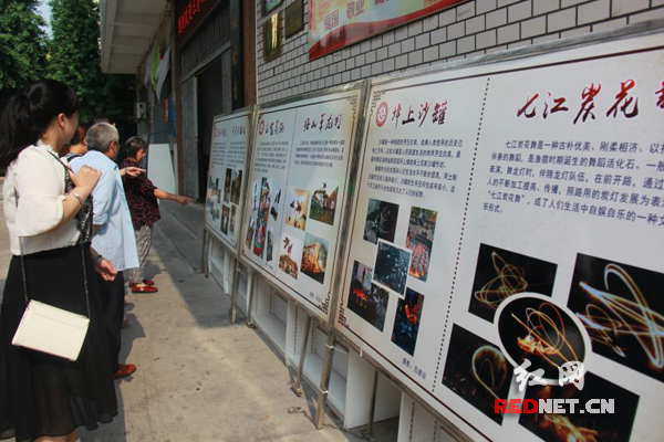 此次图片展通过直观的图片展示以及文字解说的形式介绍了邵阳市部分入列国家级、省级、市级的“非遗”项目,让广大群众感受到本地丰富多彩的民俗文化,深入了解邵阳市的传统非物质文化遗产项目,其中既有滩头年画、白仓高跷、苗族油茶、蓝印花布等耳熟能详的项目,也有七江炭花舞、吊龙、丝弦等群众比较陌生的项目。