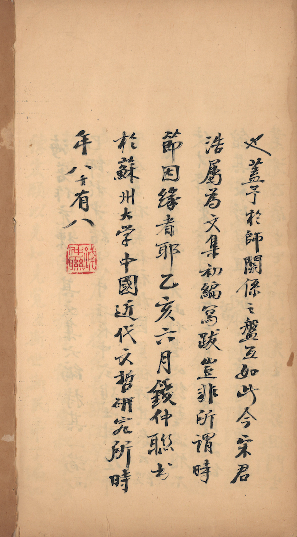 钱先生钞录来并未留底的《前言》以及数次钞录来的文本及校勘,均已交付出版社,并未留存,后经苏晨先生刊入《学土》第一辑。而后来钱先生将前言以及《茹经堂文集跋》发表于《苏州大学学报》(哲学社会科学版)一九九六年第四期,所用的《前言》即是本书的前言,并未采用为《文集》《札丛》《题跋》三书合集而改写的三十五叶的《前言》。