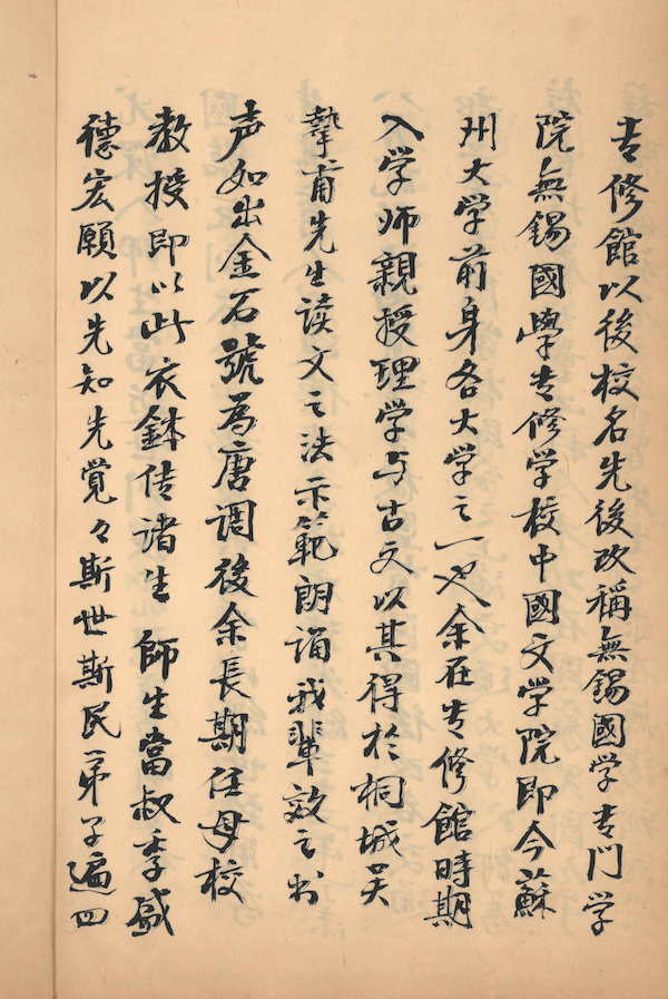 大函云“《涛园集序》有缺漏部分”,嘱复印补上。查敝处所存底稿,该文是简体字横排,剪贴上。可能公等在苏复印时,该剪页反面的文字,没有复印,致有缺漏。兹由联亲笔用繁体字抄写一份奉上,即请用联抄奉的,原剪贴横排的不用。嘱为先业师《茹经堂文集》作跋,该文集共有六编之多,不知贵处是否六编都具备。联处原有此书,二十世纪六七十年代被毁。现已片纸无存。虽作跋文,也不能说空话。贵处可否将每一编的原序原跋复印一份给我,以便参酌后动笔(全书不要寄来,寄回时邮递麻烦)。