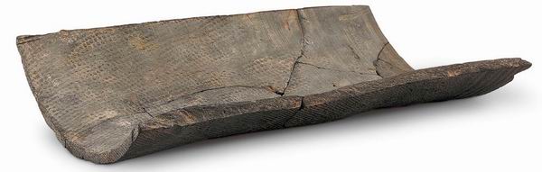 基于以上认识,可以重新检视传世文物中被认为是“铜雀瓦砚”者。清宫文物在20世纪上半叶历经飘零散落,其中《西清砚谱》所载六方铜雀瓦砚归今台北故宫博物院收藏。这六方瓦砚中,五方见于《西清砚谱古砚特展》,皆板瓦形态,材质、形制、尺寸稍有不同,大者纵长约27厘米,小者仅20厘米;砚面(即板瓦凸面)磨光,砚面受墨处洼下,略作瓶型、葫芦形或半月形,砚面上多有历代镌铭;颜色多黝黑泛赭红,也有一方为赭黄;但诸砚最显著的共同特点为砚背(即板瓦凹面)满布布纹,并有阳文“建安十五年”五字〔图二〕。
