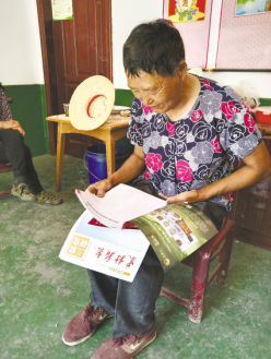 “杨明见是我的帮扶户,前两天给我打电话,问到了新书没有,我想找几本农技方面的书给他送去。另外还想找几本红色历史书籍送给他的孙子看看。”李玉华是湖北省长阳土家族自治县磨市镇救师口村的一名村干部,6月9日,她从村农家书屋挑选了《精准扶贫——农业科技扶贫读本》《少年毛泽东》等书籍,在办理借书登记之后,骑车送到同村村民杨明见家中。