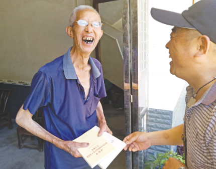 看到李玉华和她带来的书籍,杨明见十分高兴。由于身患类风湿多年,安静地看书是杨明见日常生活中的最大爱好。他说:“村干部能帮我送书到家里来,确实非常感谢。经常看看书,我的心情也蛮好。”